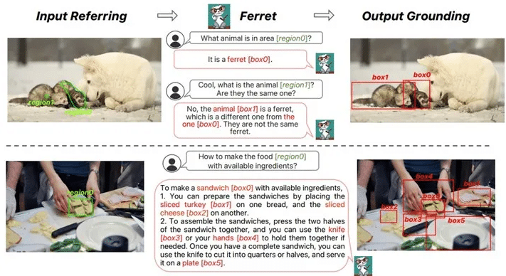 Örneğin, görseldeki bir hayvanın görüntüsü vurgulanıp Ferret’a hayvanın ne olduğu sorulduğunda model, canlının türünü ve kullanıcının bir gruptan tek bir hayvana atıfta bulunup bulunmadığını belirleyebilir. Ferret, daha fazla yanıt sunmak için görüntüde tespit edilen diğer öğelerin bağlamını da kullanabilir.